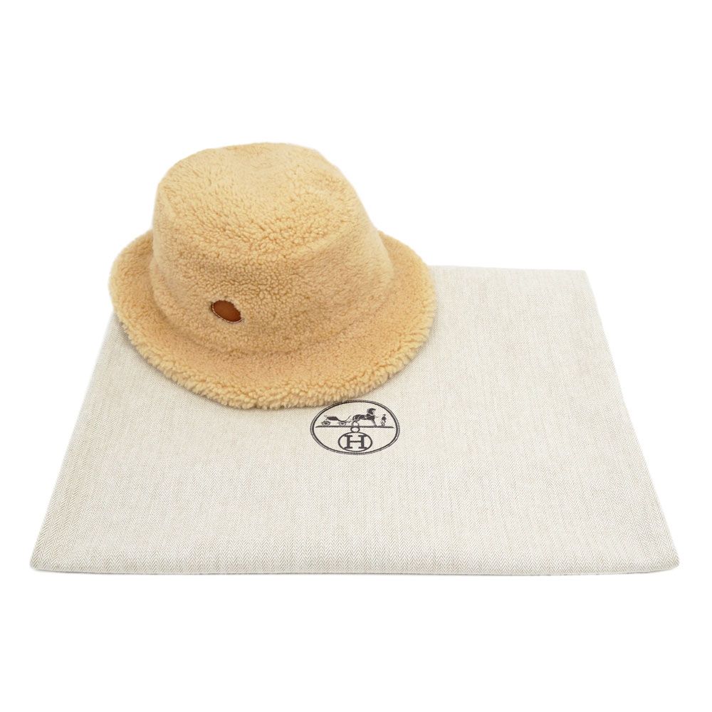 名東 エルメス フォーブ ムートン バケットハット 帽子 ベージュ系 サイズ58 小物 レディース 女