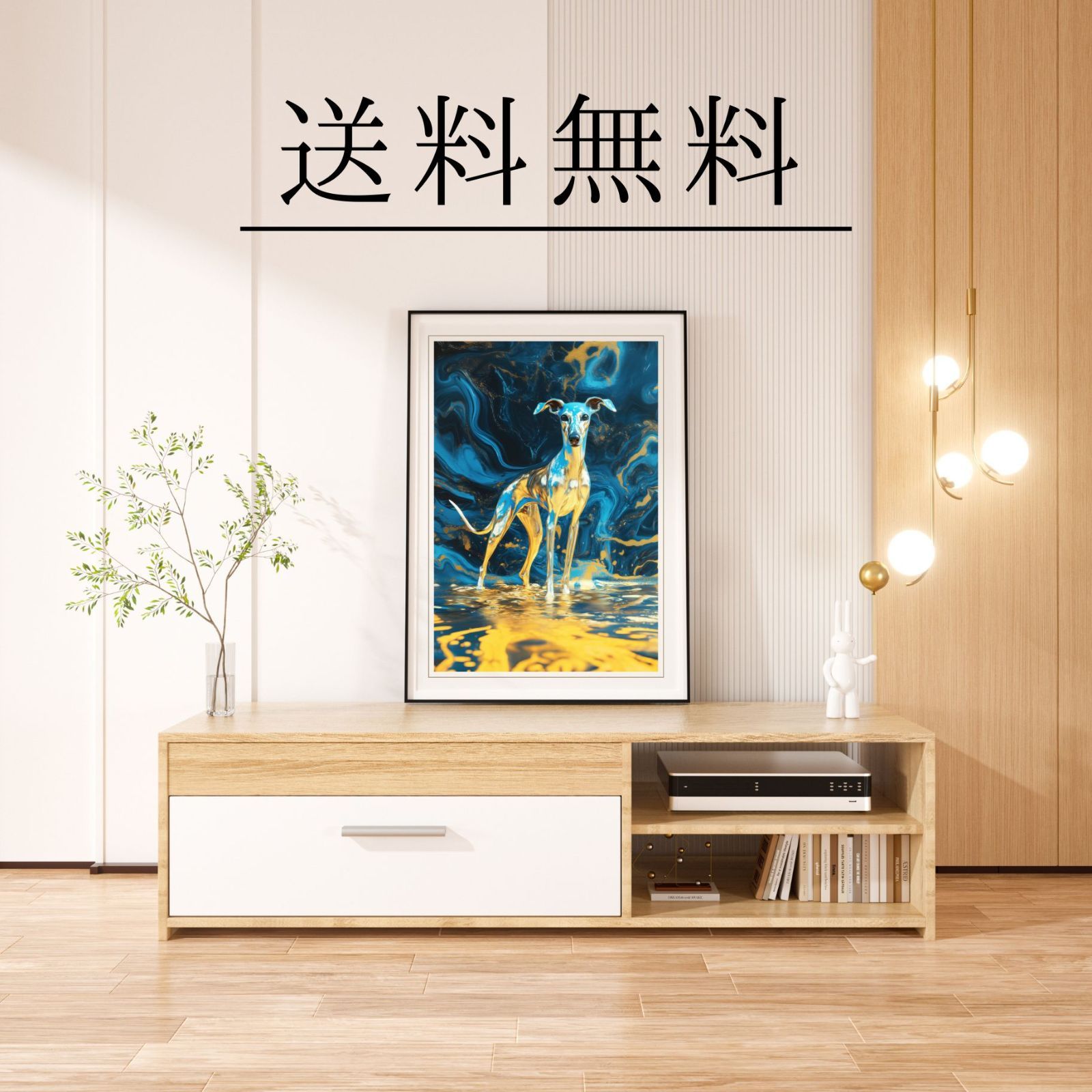 青と金 - イタリアングレーハウンド犬 No.3 イタグレ ゴールド ペットロス うちの子 記念日 アートポスター 犬の絵 犬のイラスト ギフト プレゼント