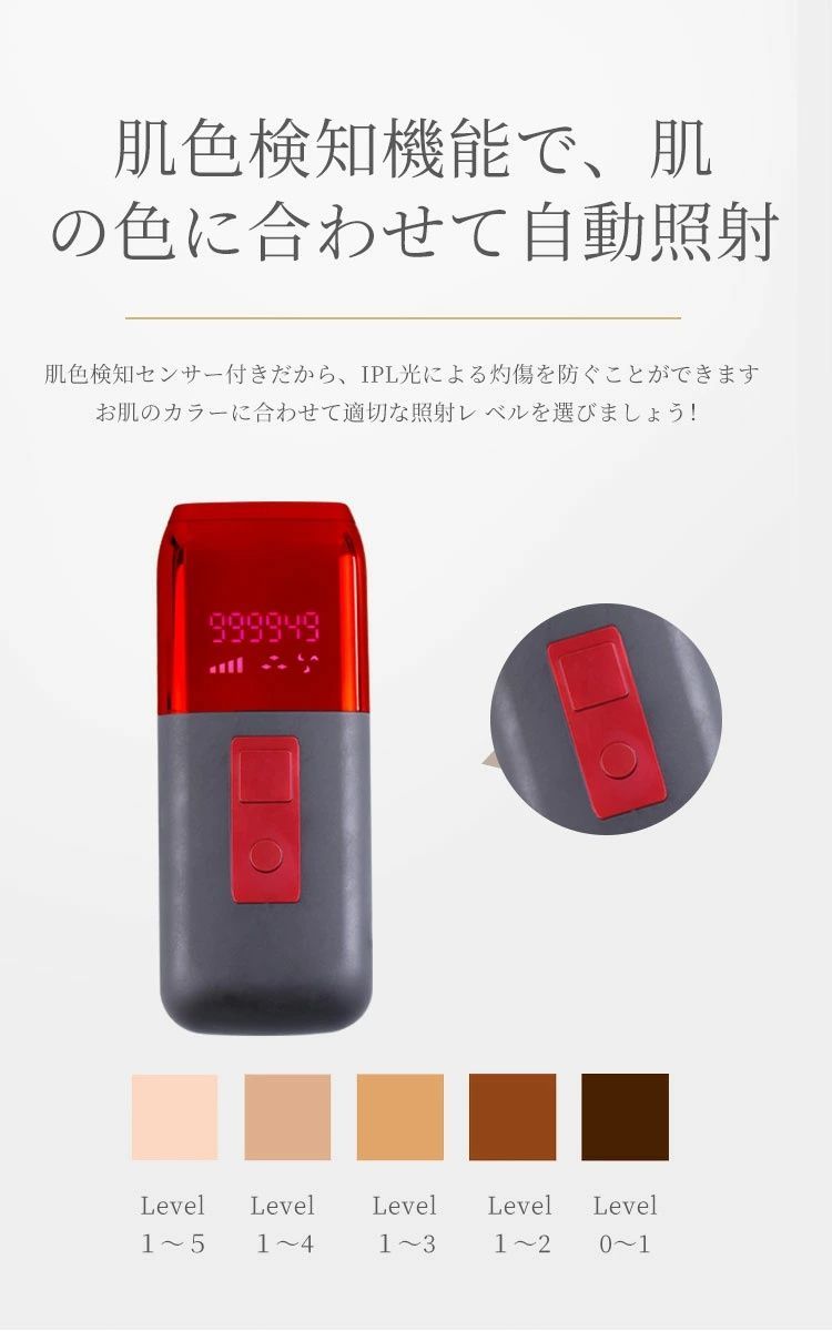 2、5段階照射レベル:使用部位や肌質によって、照射レベルが1~5調整できるので、脱毛効率がアップ!