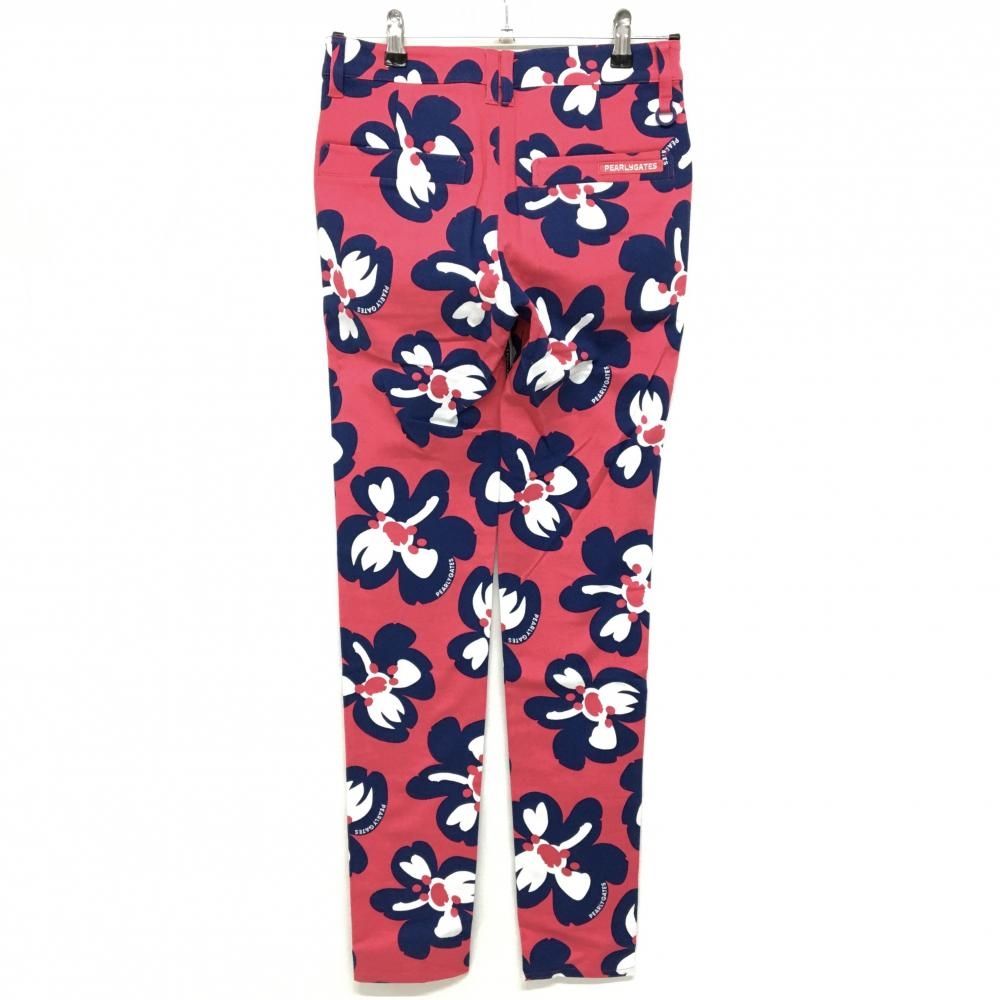 パーリーゲイツ パンツ レッドピンク×ネイビー 花柄 ロゴ刺しゅう レディース 0 S ゴルフウェア PEARLY GATES
