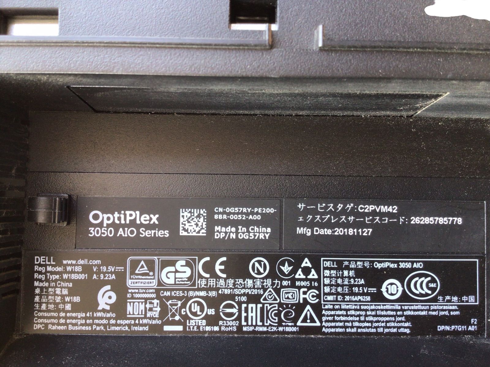 DELL OptiPlex 3050 AIO CPU CORE i 3-7100 メモリ 4096 MB ストレージ無し 番号E 11