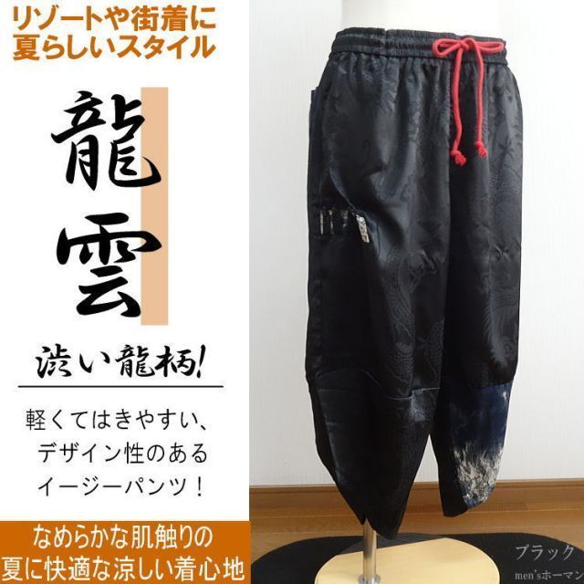 商品名:2024年夏物新作【ビッグ有】衣櫻/ころもざくら【送料無料】龍柄 雲柄 別布切替え 釦飾り ポリエステルジャガード素材 7分丈 イージーパンツ 半パンツ ハーフパンツ ショートパンツ 黒 L/XL(LL)(L~3L対応)【smtb-k】【ky】父の日【YDKG-k】メンズ【ky】ギフト【RCP】SA-1626