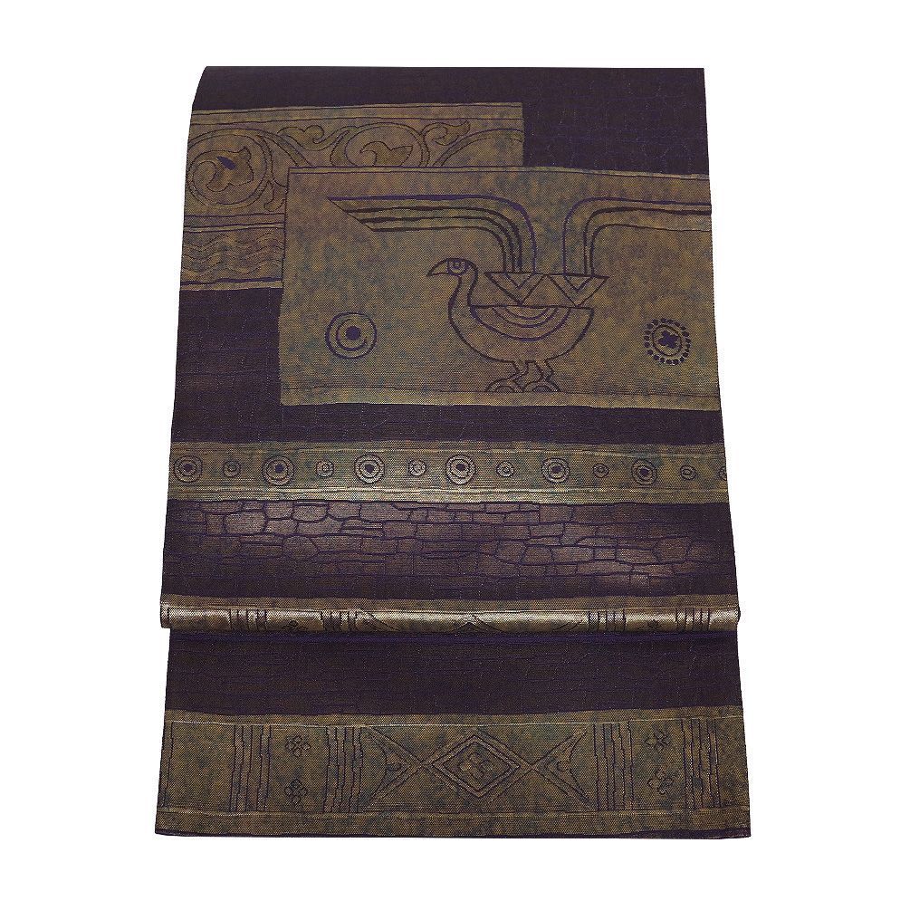 京都西陣 漆箔 澤屋重兵衛 訪問着用 袋帯 正絹 金箔 紫 古代壁画 鳥 花唐草 Lサイズ F 8410 レディース フォーマル