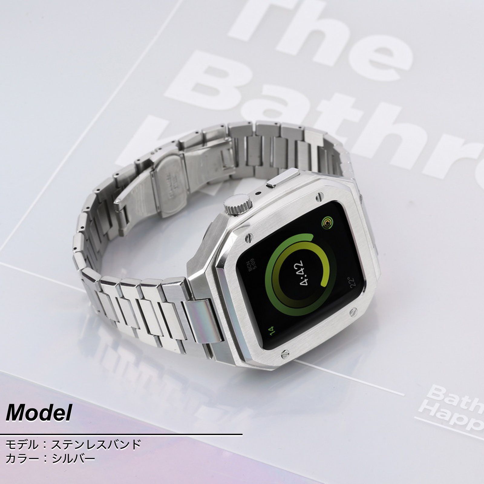 バンド アップルウォッチ カバー ベルト ケース 一体型 ステンレス セット メンズ 高級 おしゃれ フル