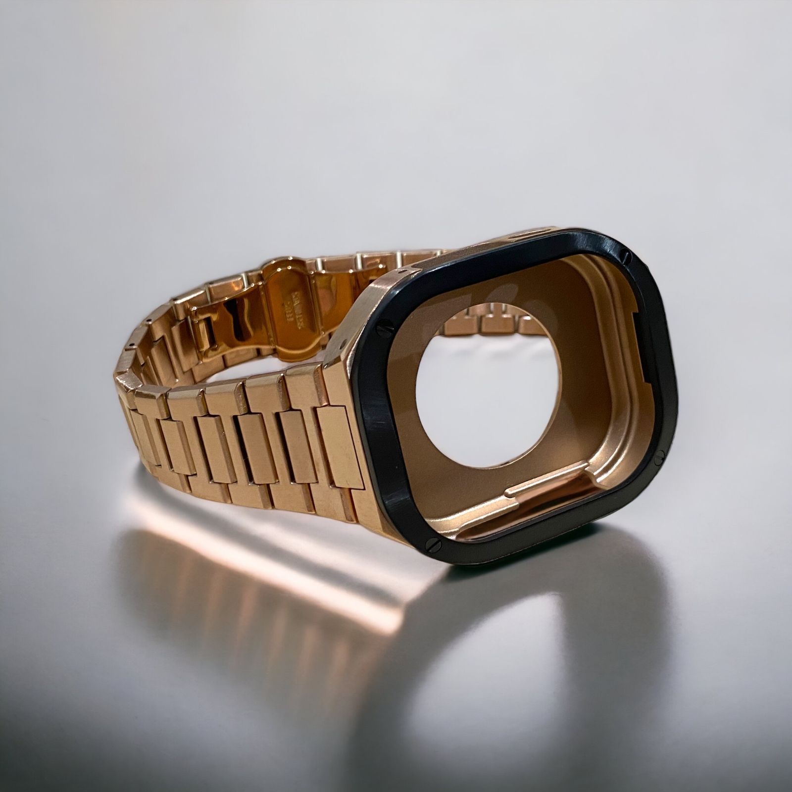 ローズゴールド 49 mm apple watch ultra アップルウォッチ ラバーバンドも取り付け メタルカバーセット ウルトラ 49ミリ用 カスタム ステンレスベルト ステンレスバンド キラキラ