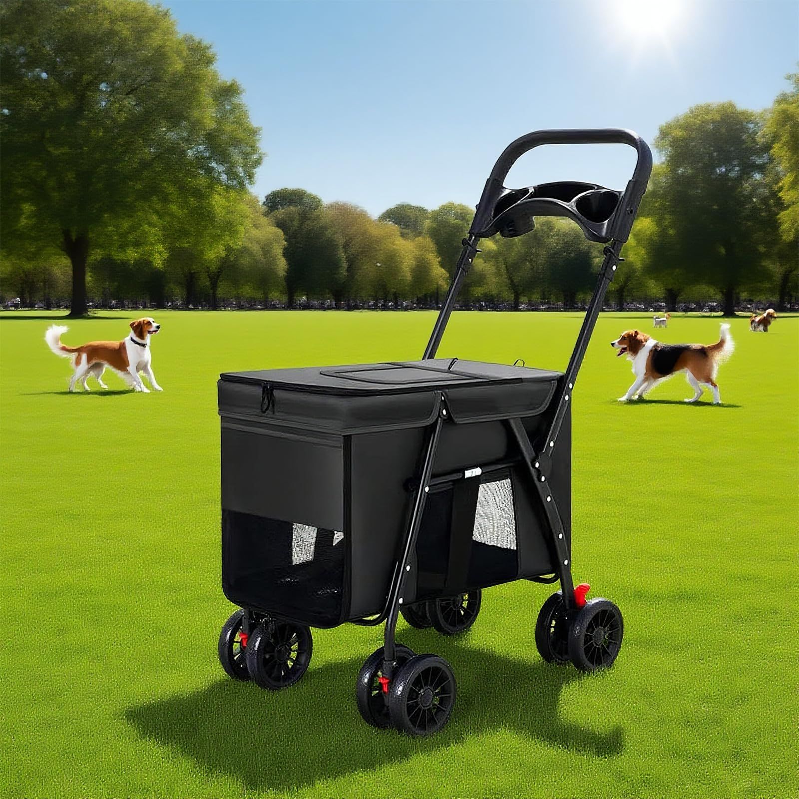 ブラック 外出 散歩 買物に最適 ×100 cm ペットベビーカー 承重 30 kg 開放感満点 ブレーキ付き ワイドスペース万向前輪 五大換気窓 中大型犬 高強度金属製 折り畳みワンタッチ2 WAYペ 介護用 後輪ブレーキ付き 前輪360°