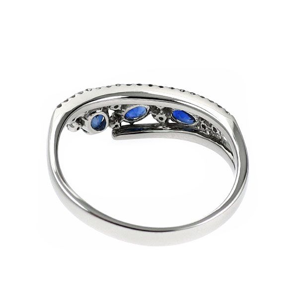 濃厚で鮮やかな煌めきのサファイアを3石飾った、プラチナ950ベースのエレガントなリングです。