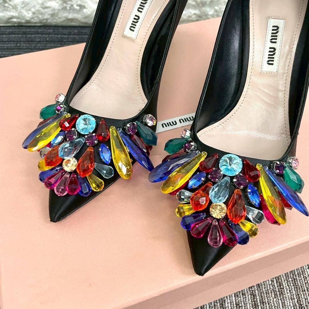 ミュウミュウ サテン マルチカラー ビジュー パンプスになります。