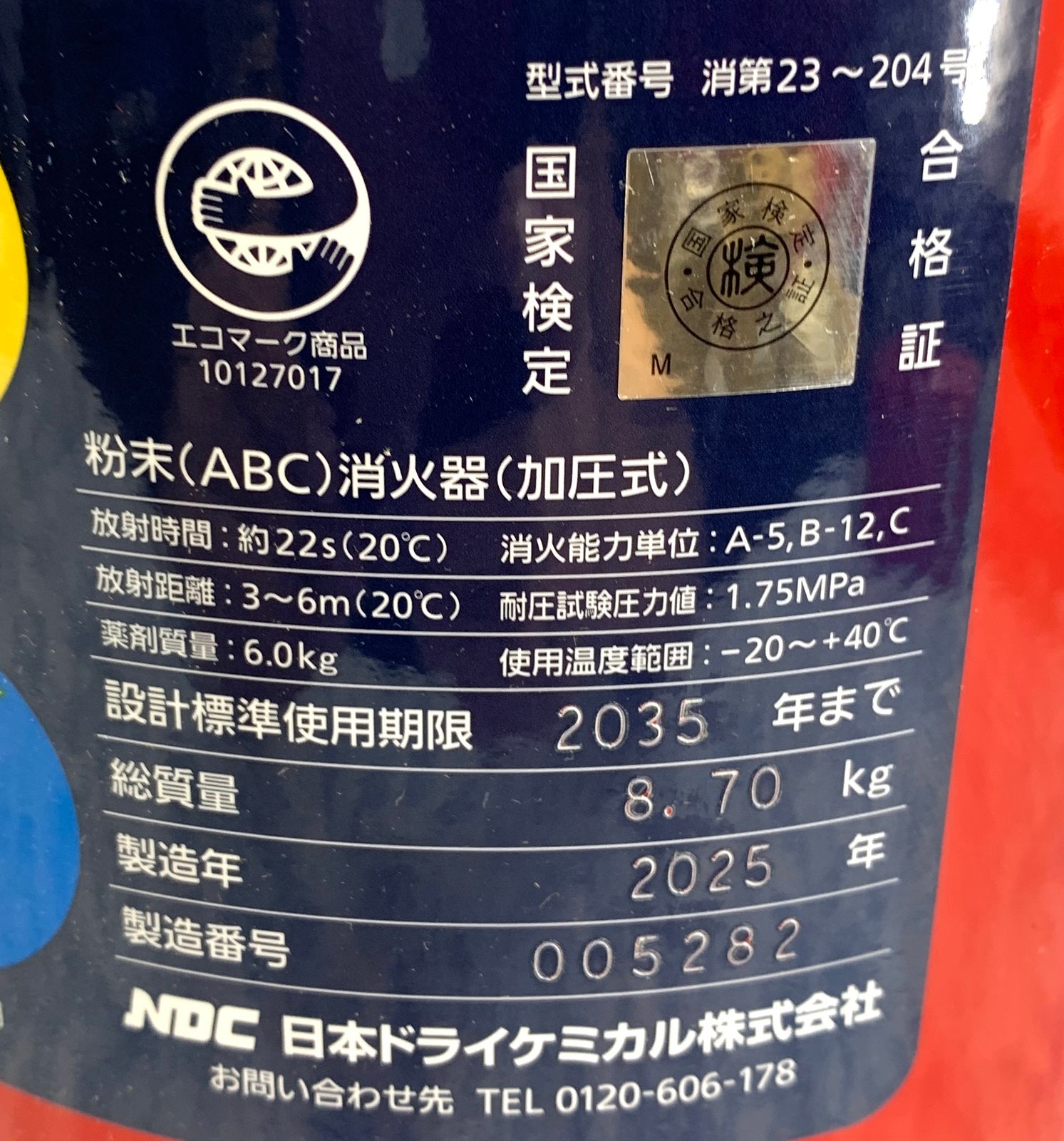 【開封済・未使用品】NDC ABC粉末消火器 本体 20型 加圧式 692-9759 PAN-20AP2