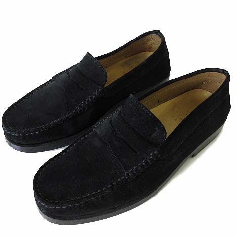トッズ TOD S ローファー コインローファー スリッポン 本革 スエード レザー ロゴ 刻印 7 黒 ブラック 26.0 cm くつ 靴 シューズ