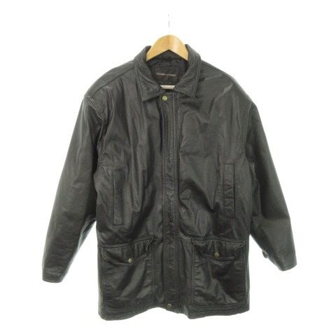 【商品名】ドアオム D'HOMME A HOMME ヴィンテージ レザージャケット 本革 ステンカラー ジップアップ キルティング裏地 L 黒 ブラック /AH11 ■GY44