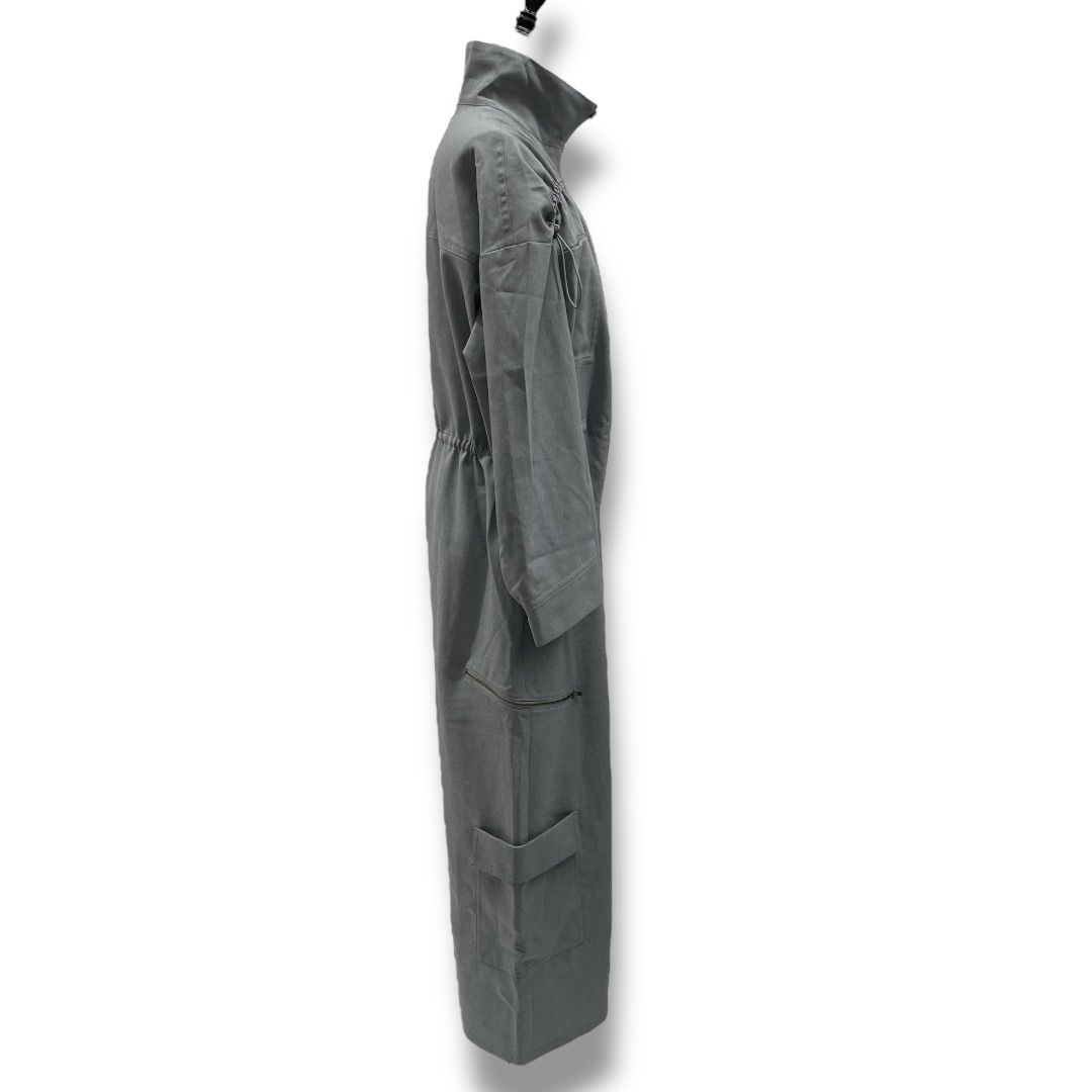 MECRE メクル ウエストドロスト オールインワン つなぎ ドローコード ワイド カットオフ ジップアップ 長袖 -0 灰色 グレー Mサイズ レディース 秋 ゴーゴー No.1170
