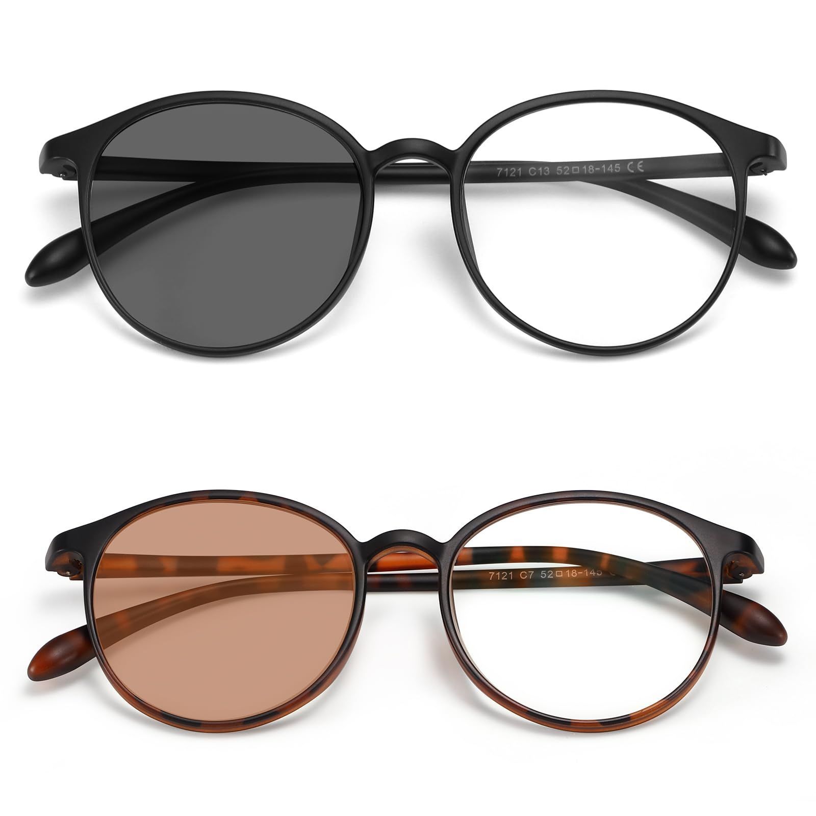 Color:フロストブラック+べっ甲柄_Size:138*49*145mm [Dollger] ブルーライトカットメガネ 調光メガネ 度なし 調光レンズ 屋外サングラス 室内透明メガネ 調光サングラス パソコンメガネ 超軽量13g 紫外線カット 丸めがね フロストブラック+べっ甲柄