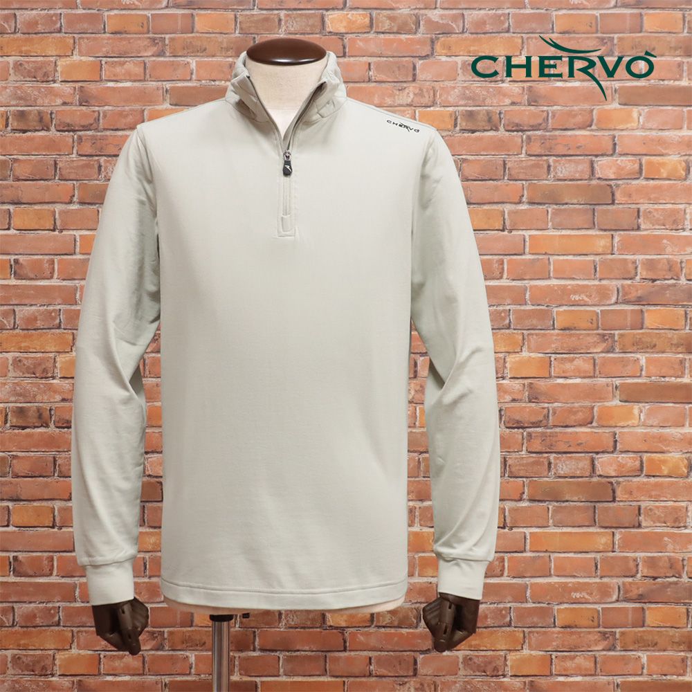 CHERVO ハーフジップ シャツ TROOP 吸湿速乾 ストレッチ ゴルフウェア 長袖 シェルボ 緑グレー md 124