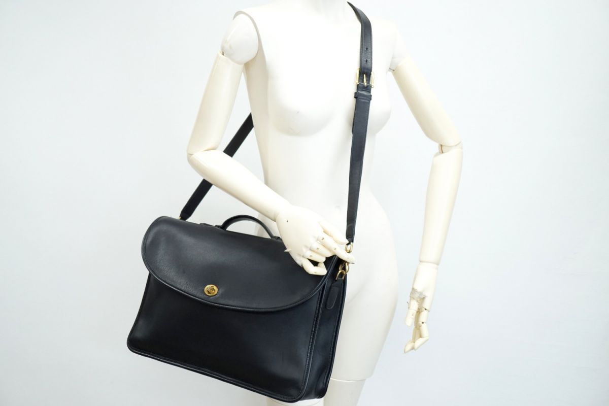 オールド コーチ ヴィンテージ 2way ビジネス ショルダー バッグ ブリーフケース M5H-5265 フルグレインレザー レザー 黒 COACH 3853h
