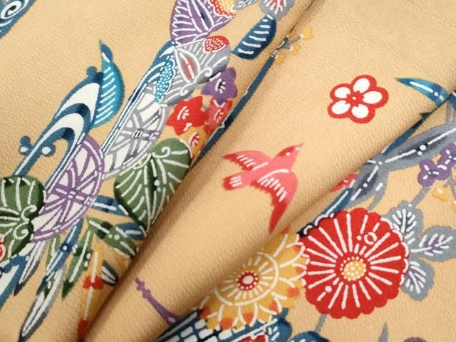 平和屋着物 上質な小紋 型染め 流水籬花鳥文 正絹 yc