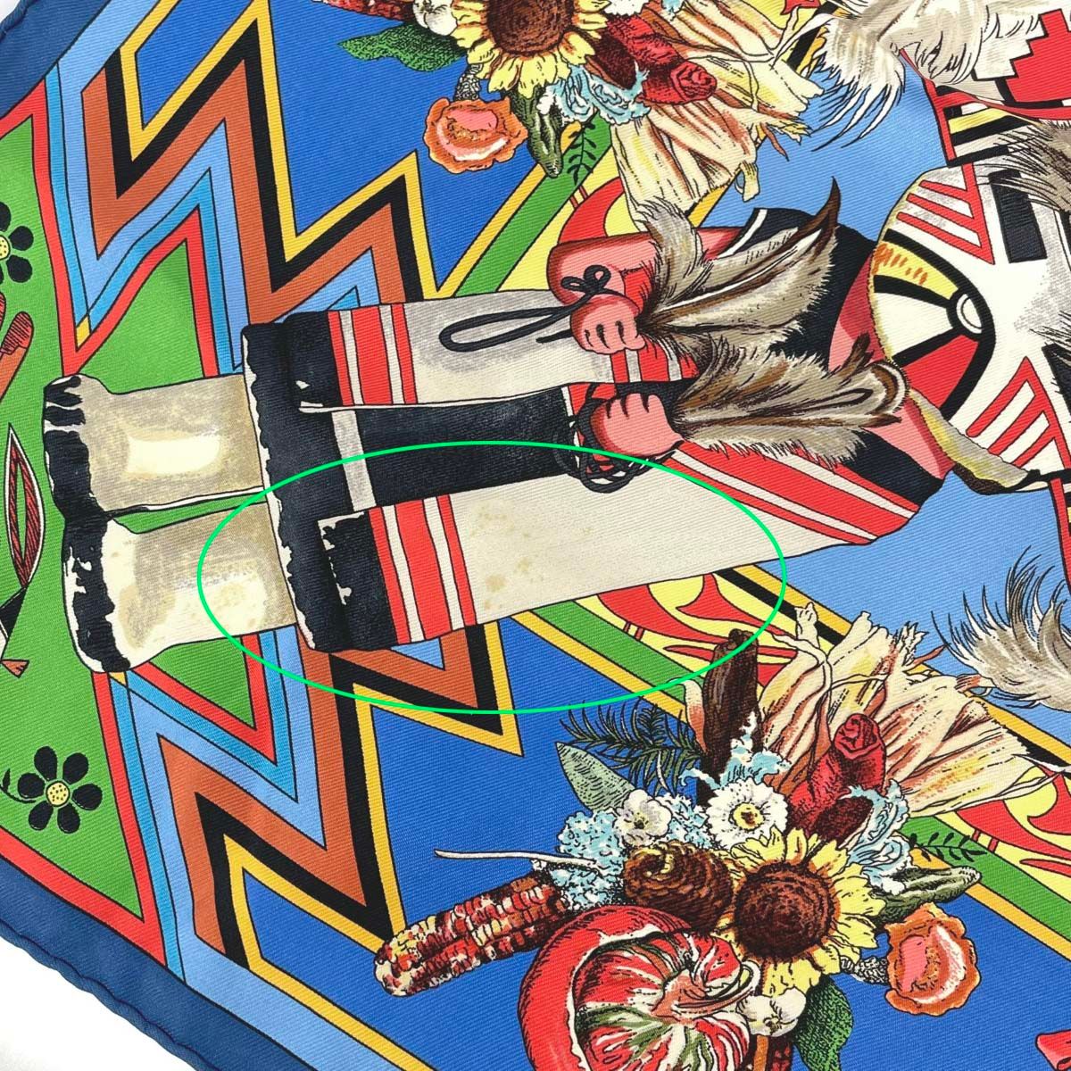 HERMES エルメス スカーフ カレ90 kachinas カチナ シルク100% ブルー レディース