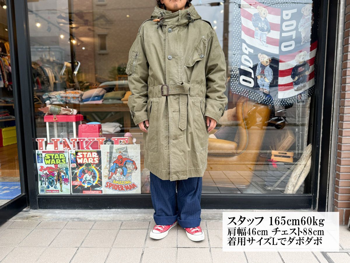 165cm 60kg ややがっちり体型のスタッフ(ラルフだとだいたいSサイズ着用)が、Lでダボダボでした。