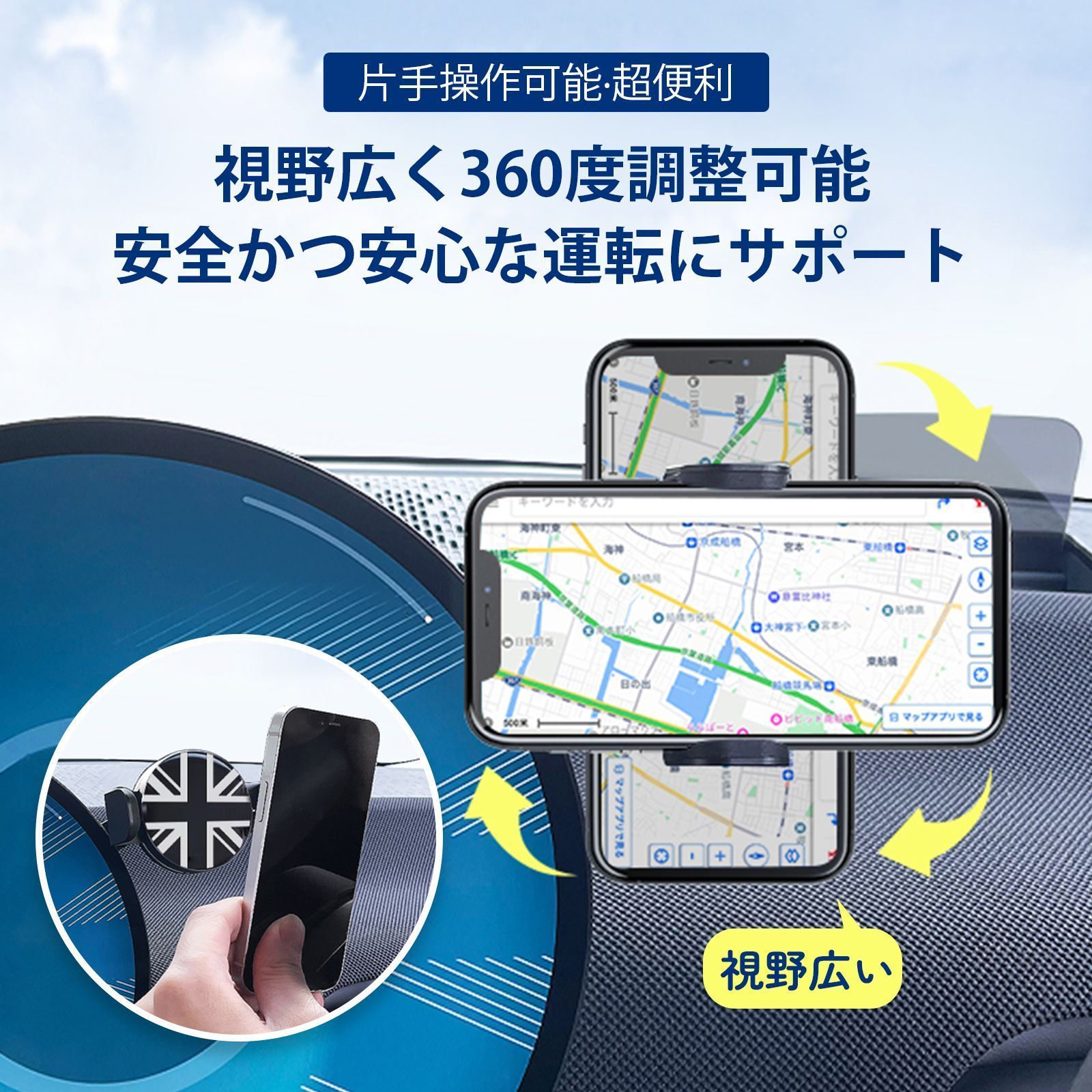 【取り付け簡単】ミニクーパー専用スマホホルダーのインストール場所:円形ディスプレイの背面。片手でアクセスでき、取り付けも簡単です。360度回転可能で、インストール方法についてはビデオの指示に従ってください。サイズが4インチから6.9インチのスマートフォンや電子機器に適しています。