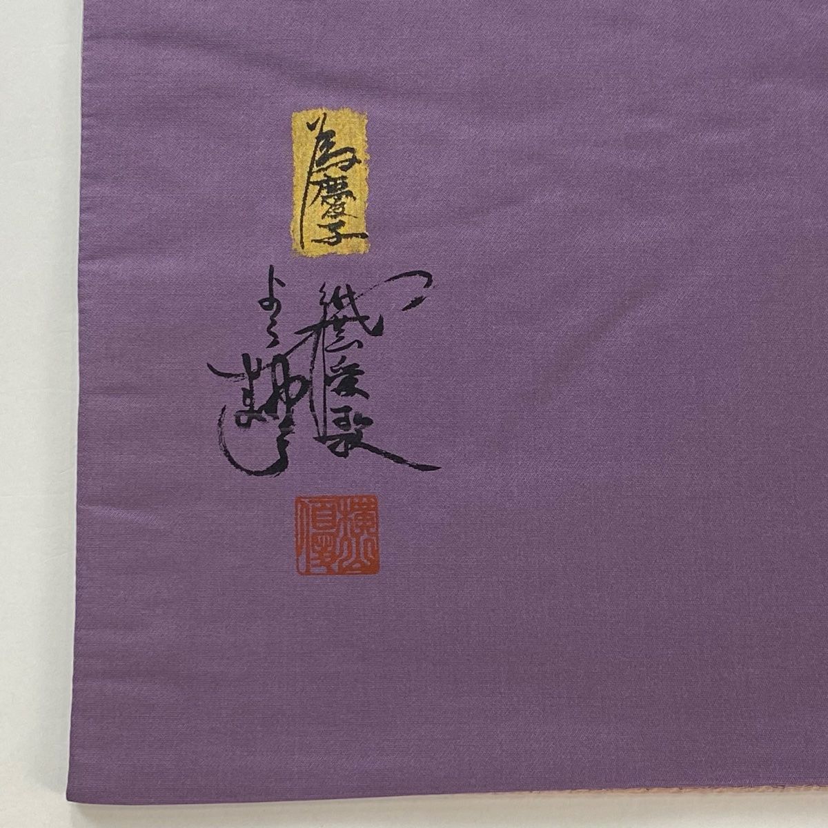 袋帯 秀品 落款 横山優 草花 和紙 薄紫 お太鼓柄 正絹