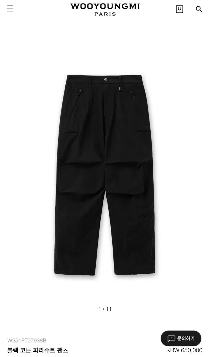 50 WOOYOUNGMI ウーヨンミ 黒 コットン パラシュート パンツ