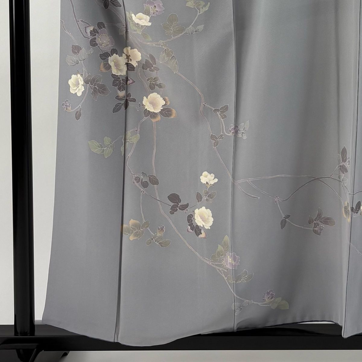 訪問着 身丈169 cm 裄丈63.5 S 袷 落款 枝花 灰色 正絹 秀品 一つ紋