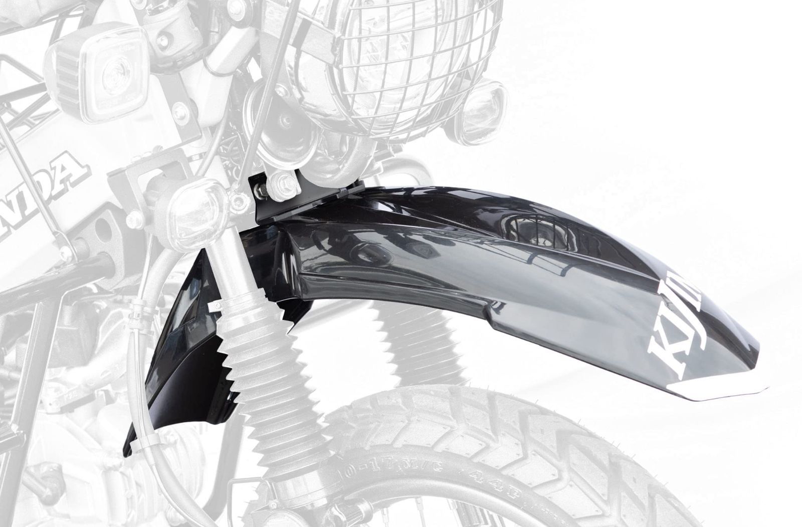 オフロードイメージの演出と実際の走行バランスを兼ね備えたハンターカブ用のアップフェンダーです。