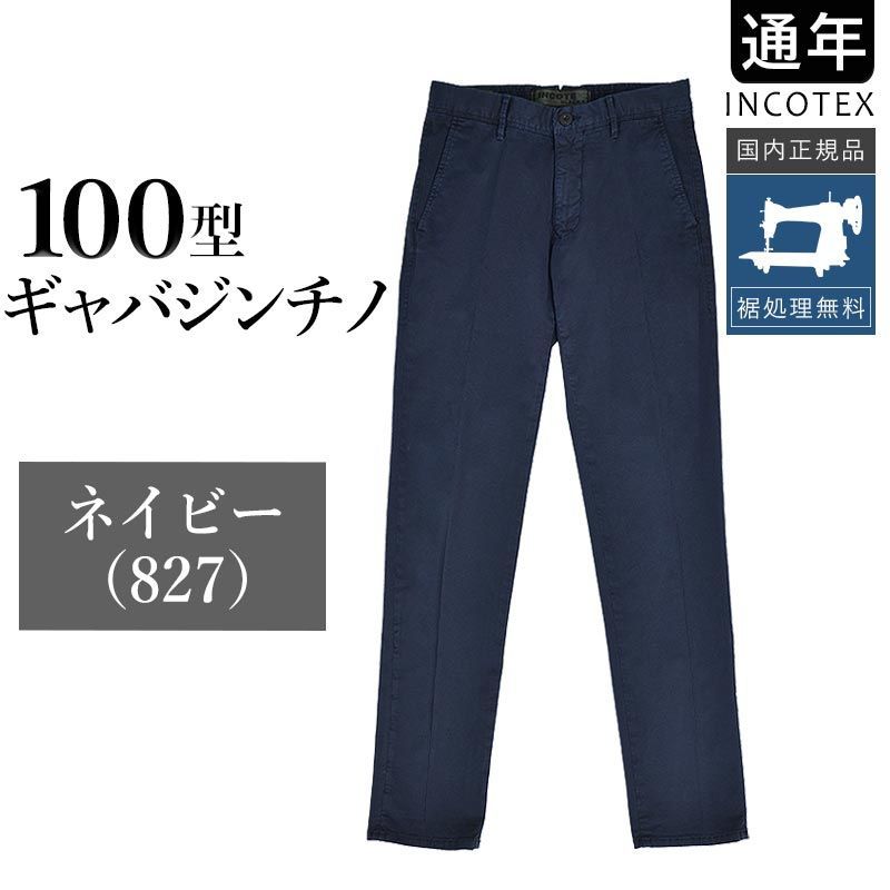 インコテックス 通年 100型 ギャバジンチノ ネイビー コットンストレッチ チノパン スリムフィット ガーメントダイ 17 S 100-9664 A INCOTEX SLACKS 裾上げ無料