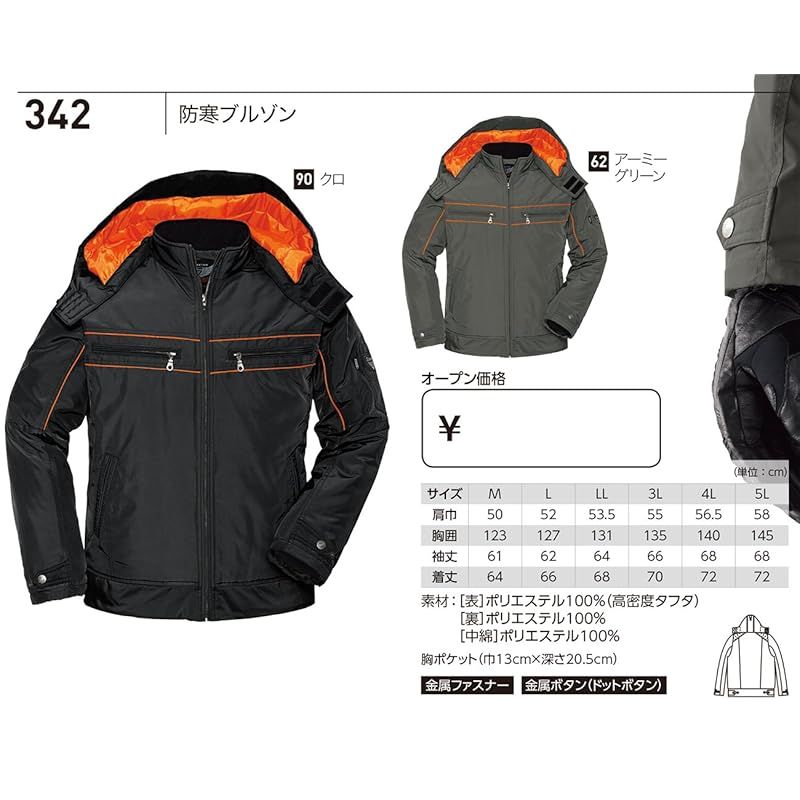 彡XEBEC ジーベック 防寒ブルゾン 秋冬用 342 62 アーミーグリーン 3 L 0