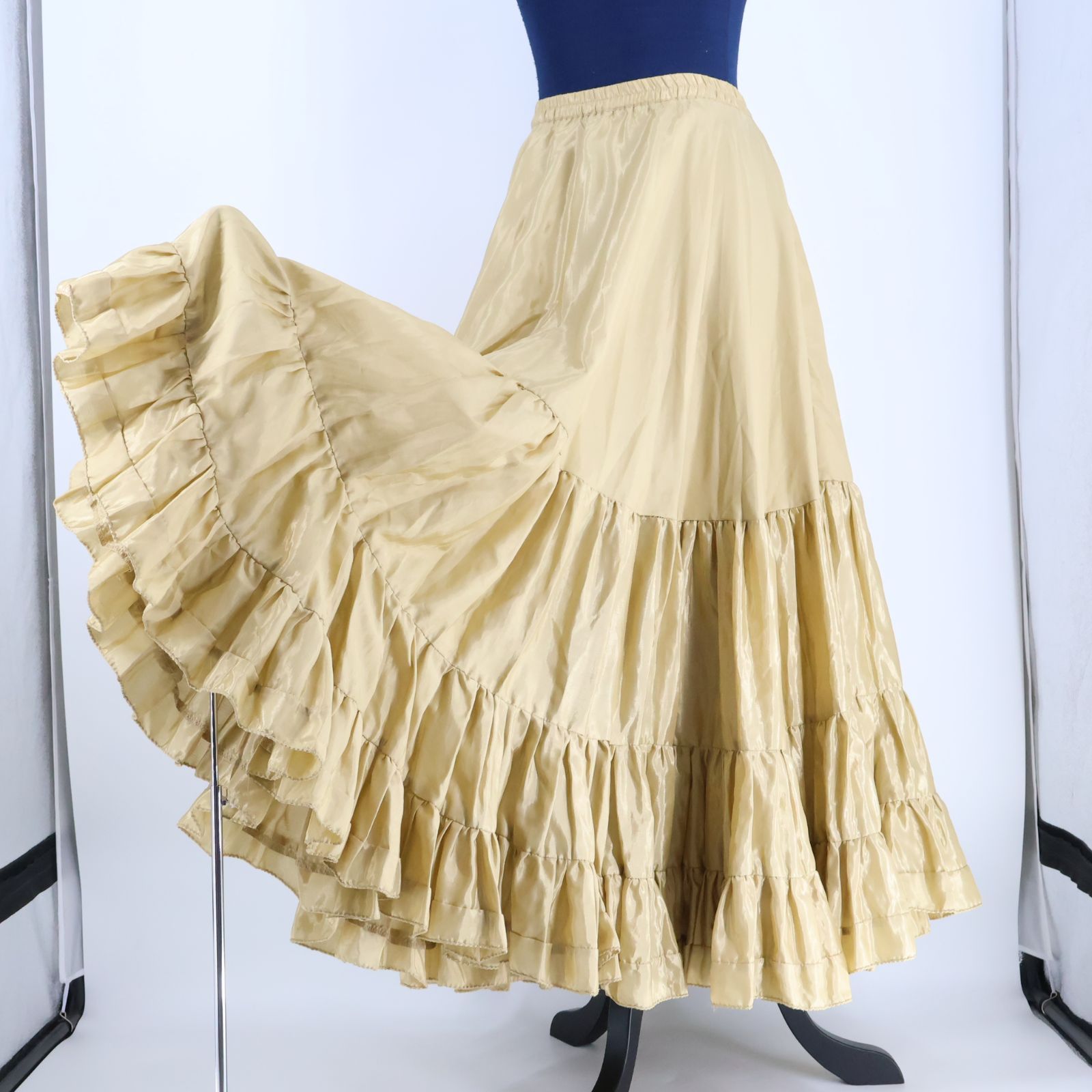 インド製 ベリーダンス用衣装 ベージュ ジプシースカート ボリューム 25ヤード シンプル 光沢 艶 フリル 明るい かわいい ベリーダンス スカート おしゃれ
