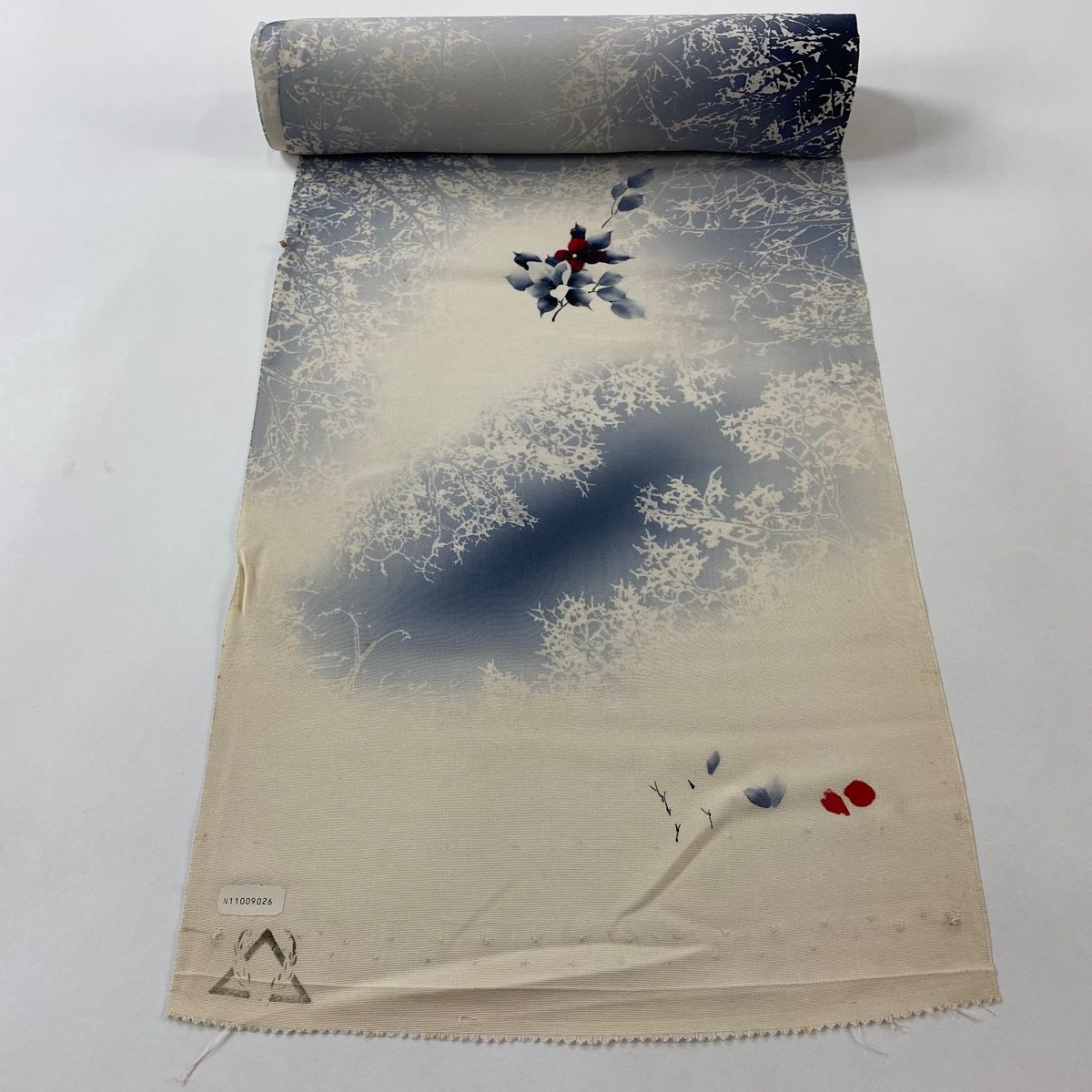 反物 秀品 小紋 草花 樹木 ぼかし 青灰色 正絹