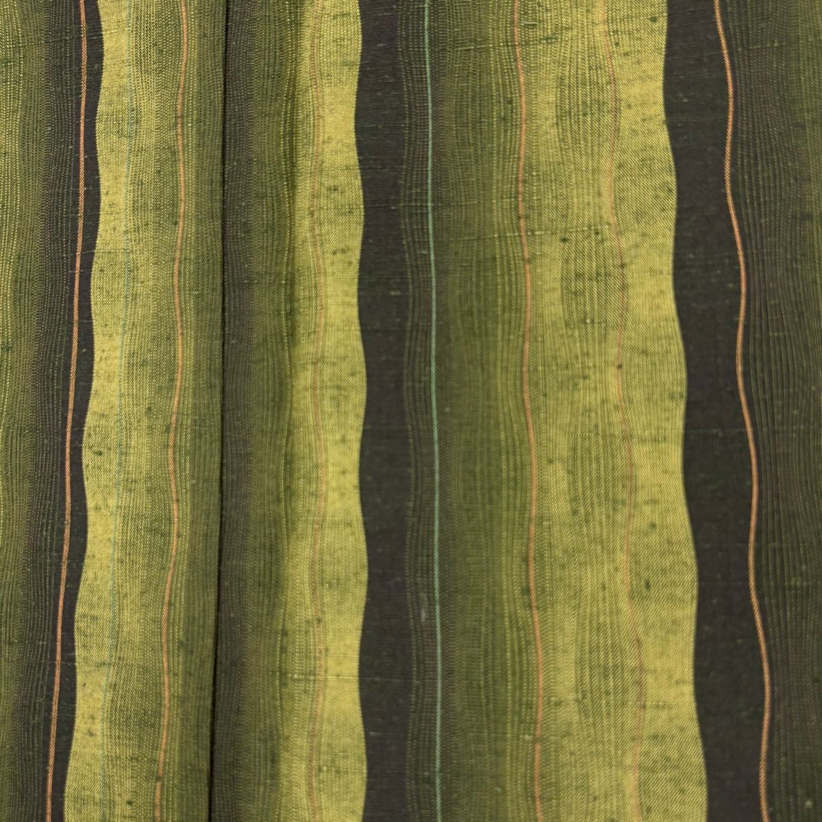 紬 身丈152 cm 裄丈62 S 袷 縞 鶯色 正絹 秀品