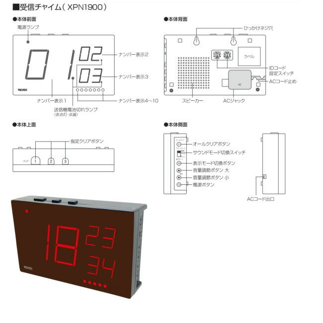 リーベックス REVEX 押しボタンナンバー表示呼び出しチャイム セット XP 1910 E 10 Ex 4 施設用品