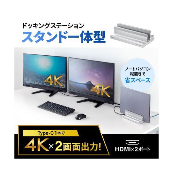 サンワサプライ USB Type-Cドッキングステーション スタンド一体型タイプ シルバー USB-CVDK 18