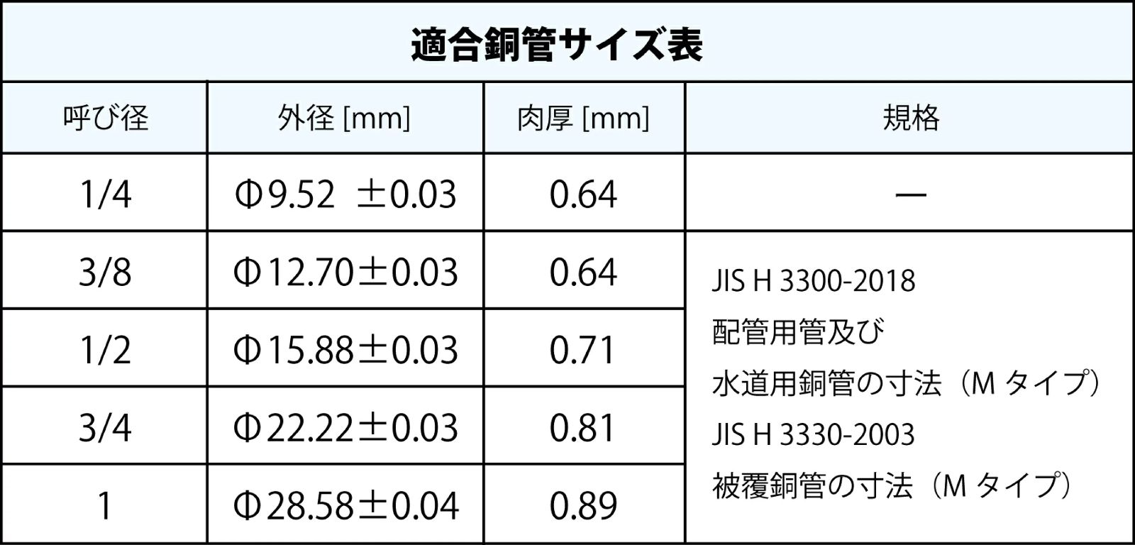 ・コイル軟質銅管(質別O・OL、なまし銅管)には、必ず付属のインサートスリーブをご使用下さい。
