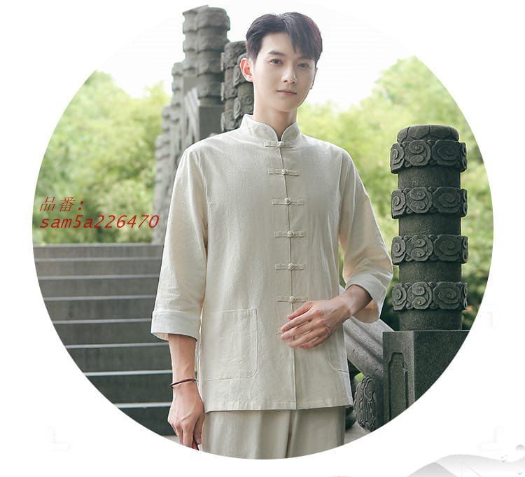 太 拳服 カンフー服 チャイナ服 練習服 メンズ 男性 カフス袖 七部袖 綿麻 7分袖 スーツ 上下セット セットアップ am 5 a 226470