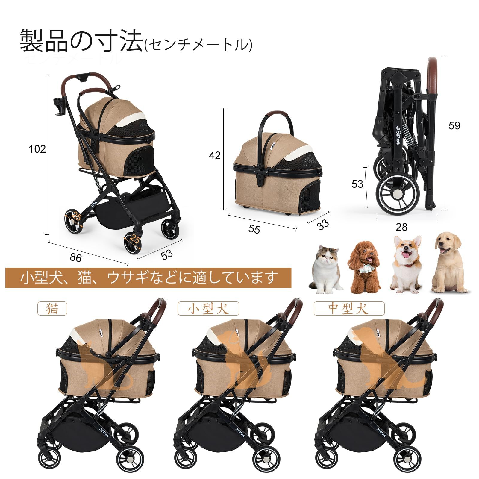 JoPet ペットベビーカー 小型犬、中型犬用、アルミ合金フレーム、犬用ベビーカー、猫用ベビーカー、折りたたみ式カート、キャリー、片手自動折りたたみ、クイックリリースホイール、PUホイール(アイアングレー)