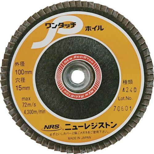 特長●ペーパー多羽根ホイールです。●ゴトツキがないフェザータッチの研磨感覚です。●最も嫌われる研磨焼けを徹底排除しました。●ねじ付で簡単に取り付けできるワンタッチ式です。●NRSPホイルの姉妹品です。用途●研磨用として中仕上げ作業に最適。●A:一般鋼、ステンレス鋼用(薄板の軽研削・研磨)。●GZ:一般鋼、ステンレス鋼用(厚板、薄板の軽研削・研磨、ビード取り)。仕様●粒度(#):240●外径(mm):100●羽根長さ(mm):23●ねじ径(mm):M10(P1.5)●最高使用回転数(rpm):13750●羽根枚数(枚):72●最高使用周速度(m/s):72仕様2●最高使用周速度:72m/s(4300m/min)●軽研削・研磨用(♯40〜100)●研磨・仕上げ用(♯120〜)●研磨用●ワンタッチ式ペーパーホイール材質/仕上セット内容/付属品注意