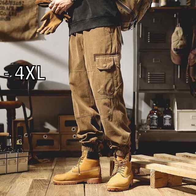 - 4 XL メンズ ファッション 服 男性用 オシャレ シンプル 大人 かっこいい 大きいサイズ ストリート 紳士服 アメリカン レトロ ワークパンツ ゆったり 機能的 九分丈 ズボン カジュアル パンツ