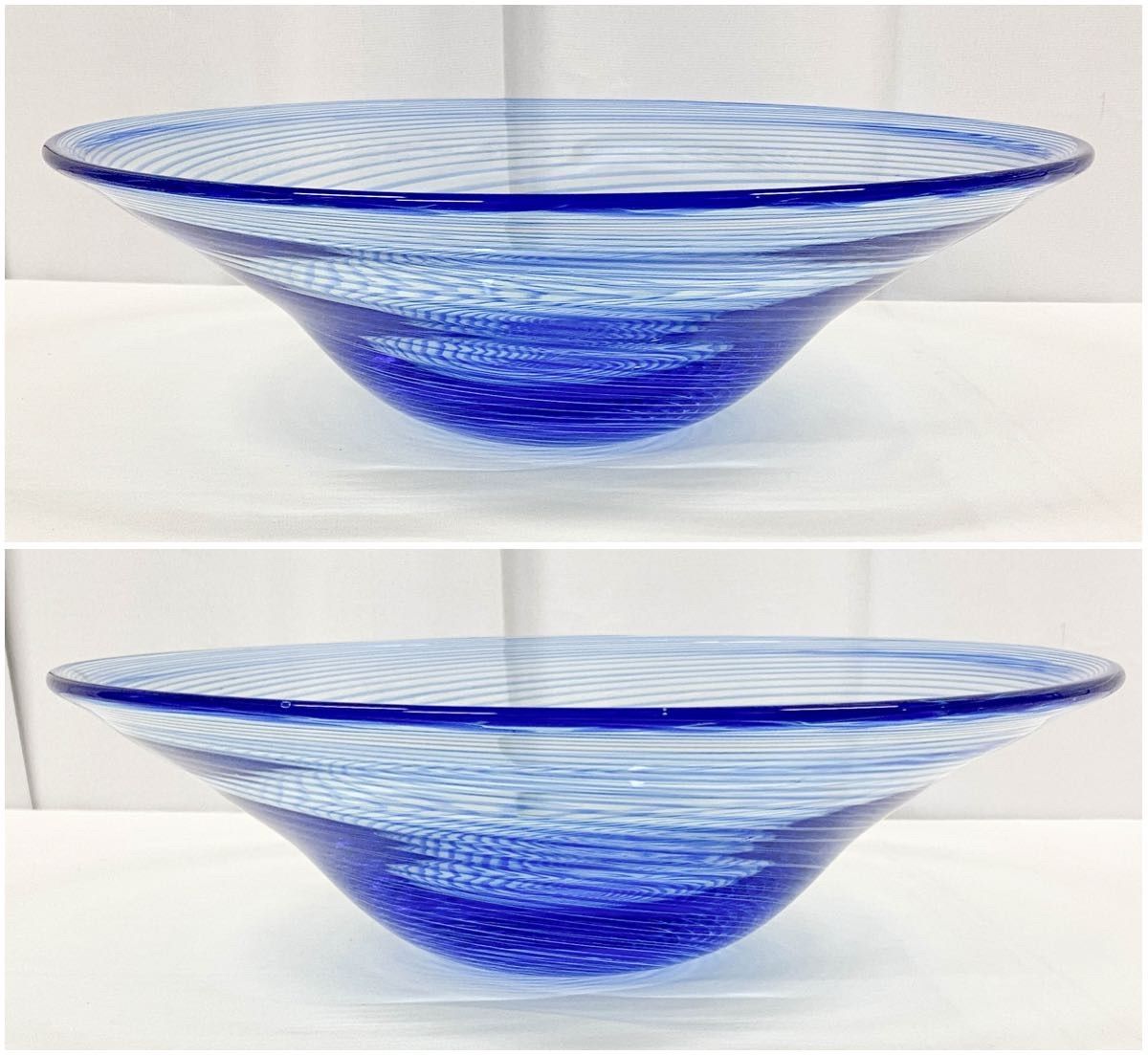 KK 196 津軽びいどろ ガラス製 水盤 渦巻き ブルー 直径約35.5 cm 重さ2.4 kg ハンドメイド 伝統工芸 フラワーベース 華道 インテリア 置物