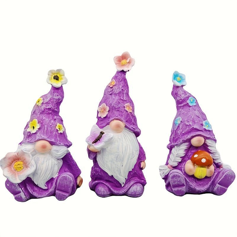 置物 オブジェ ガーデンオーナメント 3人の小人 ピンク パープル ライトグリーン 3種類 屋外 屋内 インテリア 玄関 リビング ダイニング 装飾 庭 ガーデニング ガーデン 樹脂 ギフト インテリア用品 贈り物 雑貨