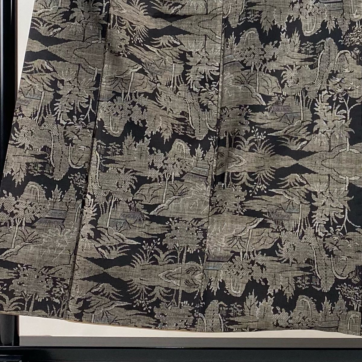 紬 身丈154.5 cm 裄丈63 S 袷 家屋 樹木 墨色 正絹
