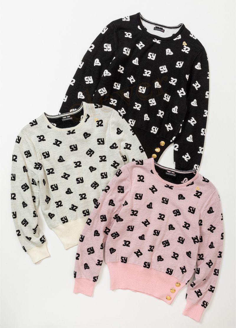 SY 32 ゴルフ モックネックシャツ トップス モックネック ジャガードニット レディース 長袖 ストレッチ ロゴデザイン SYG-23 A 07 W LOGO KNIT SWEATER xaz-syg-23