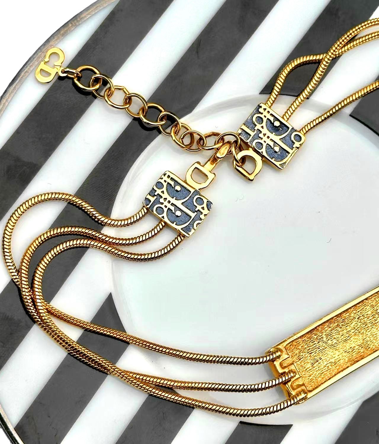 超 クリスチャンディオールChristianDiorヴィンテージトロッターDIORロゴネックレスチョーカーゴールド金具刻印あり