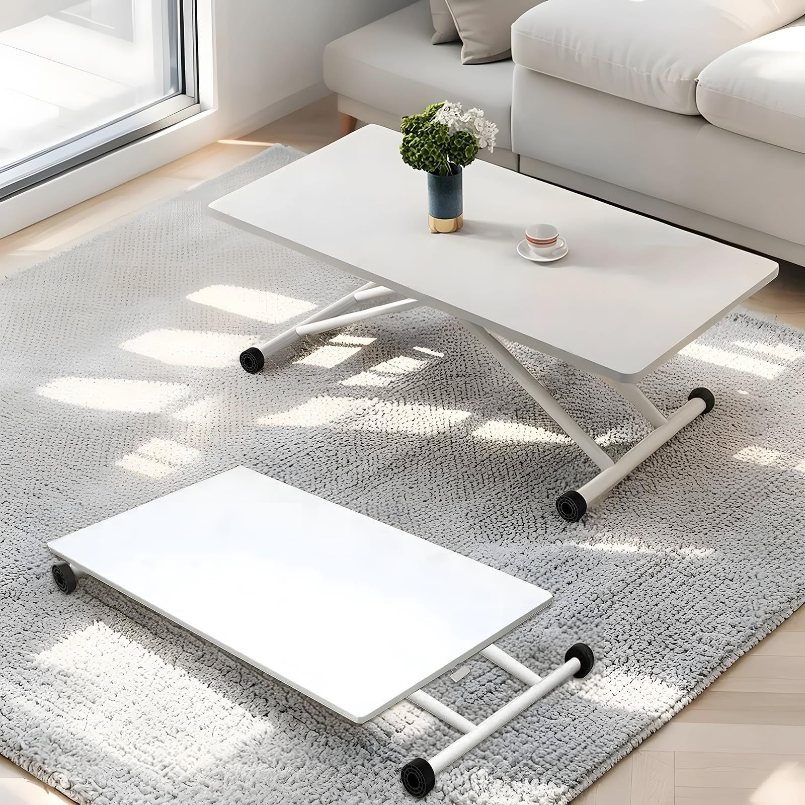 昇降テーブル 折りたたみテーブル キャスター付き ダイニングテーブル 簡易コンパクト アウトドア 折りたたみ作業台 木製 11-77cm高さ調整可能 簡単な組立設計 パソコンデスク 食卓 省スペース リビングテーブル 多機能 軽量 イベント用 ポータブル ピクニック キャンプ 室内/屋外 (ホワイト)