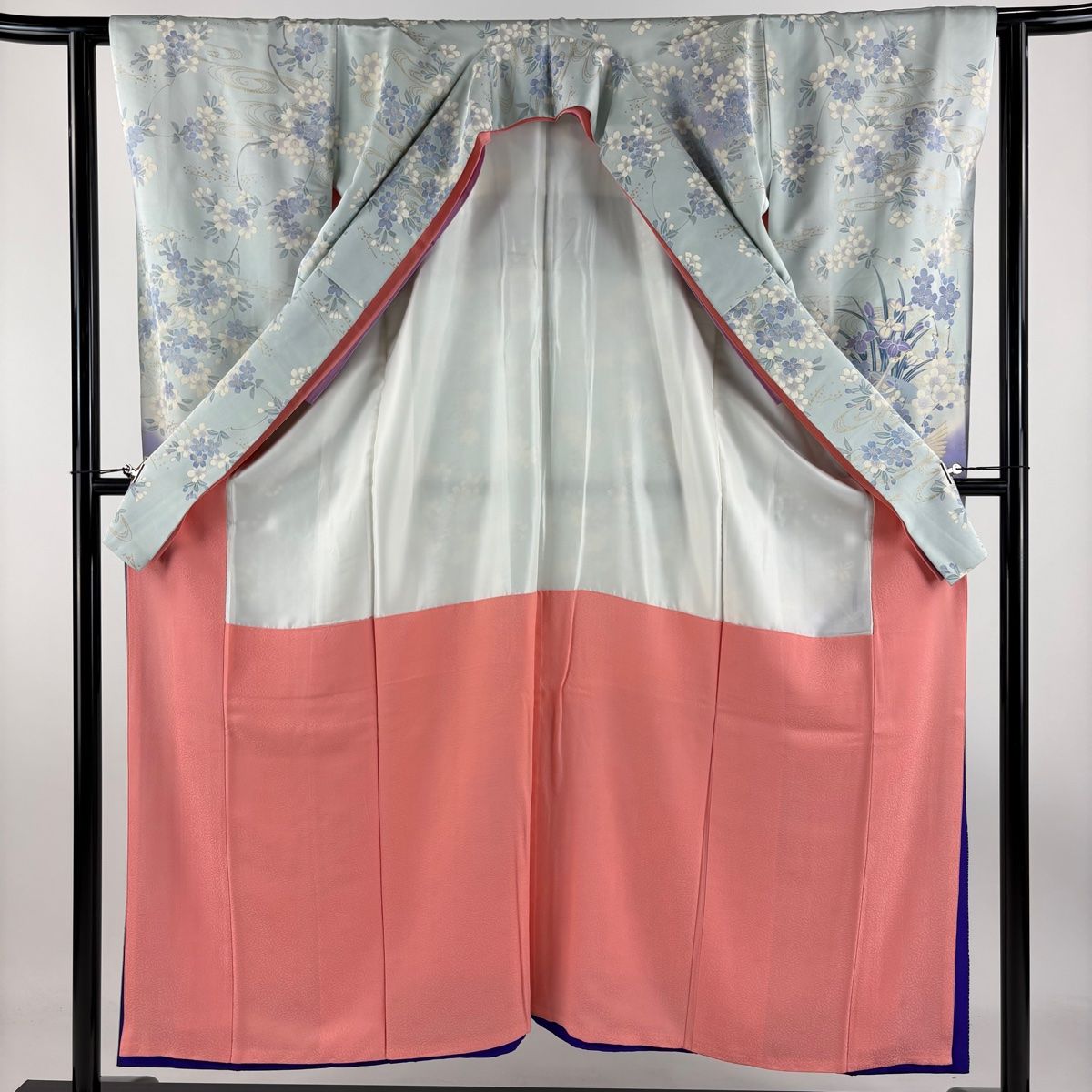 振袖 身丈154 cm 裄丈62 S 袷 鶴 枝梅 金彩 染め分け 水色 正絹 秀品