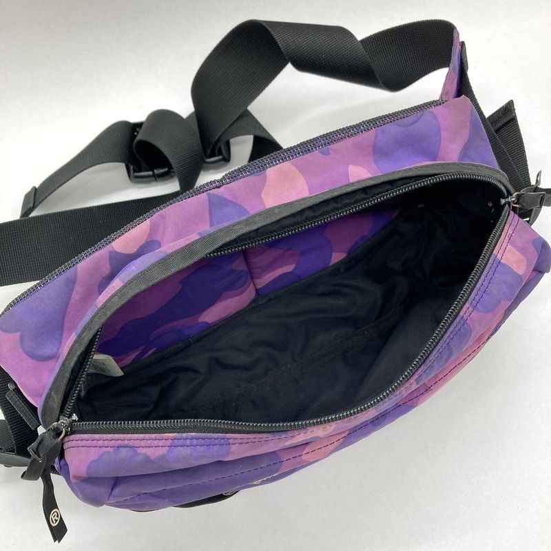 A BATHING APE BAG アベイシングエイプ ボディバッグ ウエストバッグ カモフラ フェス 旅行 男女兼用 フリーサイズ パープル系 鞄 B 15011