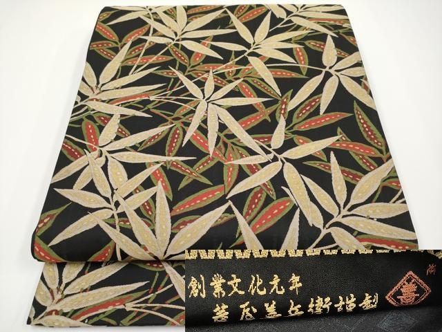 平和屋着物 上 西陣 木野織物 菱屋善兵衛謹製 六通柄袋帯 笹竹文 黒地 s 5