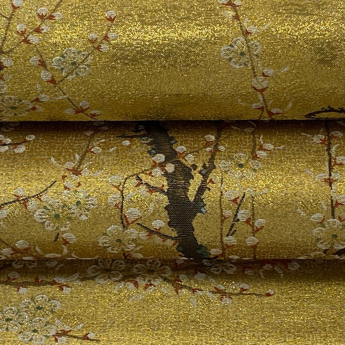 丸帯 梅花皓月図 本金箔 金色 お太鼓柄 正絹